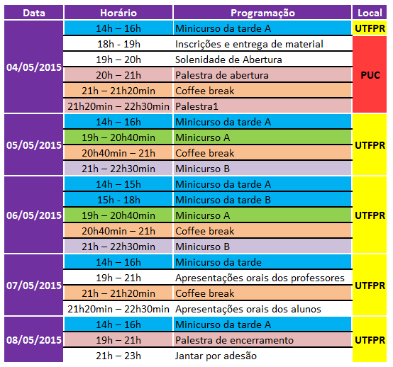 PROGRAMAÇÃO E HORÁRIOS